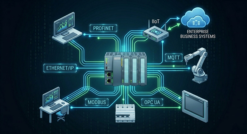 Der bedeutendste Trend im Jahr 2026 ist die Konvergenz von OT (Operational Technology) und IT (Information Technology). Hier kommt das **IIoT** ins Spiel. Moderne **SPS**-Systeme arbeiten nicht mehr isoliert. Dank Protokollen wie OPC UA und MQTT können **SPS** nun Leistungsdaten in Echtzeit direkt an Cloud-Plattformen wie AWS oder Azure streamen.